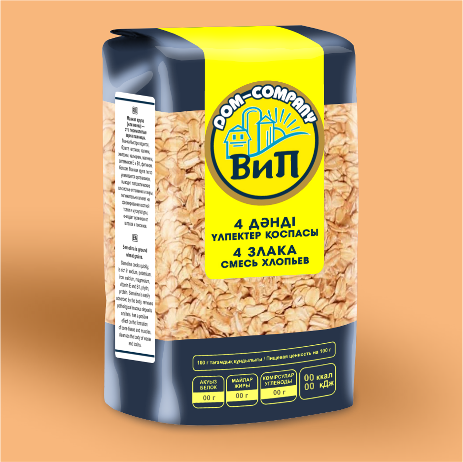 Смесь хлопьев 4 злака — это рожь, овес и ячмень и пшеница. Из данной смеси можно приготовить полноценный завтрак, учитывая наличие в их составе витаминов и полезных веществ: витамины В1, В2, В6, В9, Е, Н и РР, а также железо, калий, кальций, магний, цинк, селен, медь, марганец, йод, фтор, фосфор, натрий и это далеко не все витамины и микроэлементы, но все они необходимы человеческому организму.